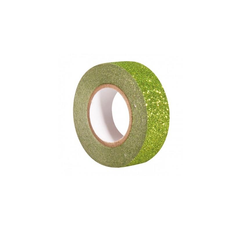 Rouleau de ruban adhésif pailleté coloris Vert, pour personnaliser tous ses objets préférés (stylos, pots à crayons, agendas,…) ou décorer toutes ses créations en papetterie (cartes postales, cahiers, …)