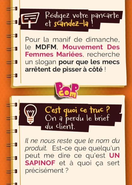 Vous allez donc tour à tour rédiger des slogans, dessiner des logos, prendre la pose, jouer la comédie, et même faire la voix off d’une publicité, à partir d’un thème de projet donné par le directeur artistique du tour. Soyez créatif et le plus convainquant pour gagner le maximum de points.