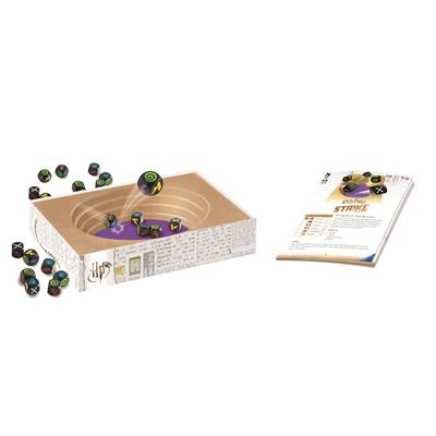 Jetez vos dés dans l’arène pour obtenir des symboles identiques et lancer les plus grands sortilèges du Monde des Sorciers ! Chaque sortilège vous fera perdre ou gagner de nouveaux dés. Le ou la dernière à posséder encore des dés à la fin de la partie deviendra le(la) champion(ne) de la bataille des Sorciers !
