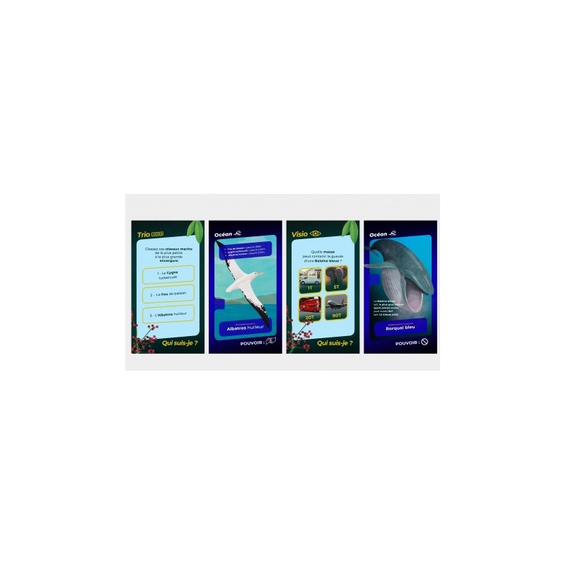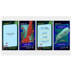 Sur chaque carte figure un Pouvoir lié aux caractéristiques de l’être vivant donnant un atout stratégique au joueur. 5 types défis sont proposés : Bio, 3 Mots, Dico, Visio, Trio.