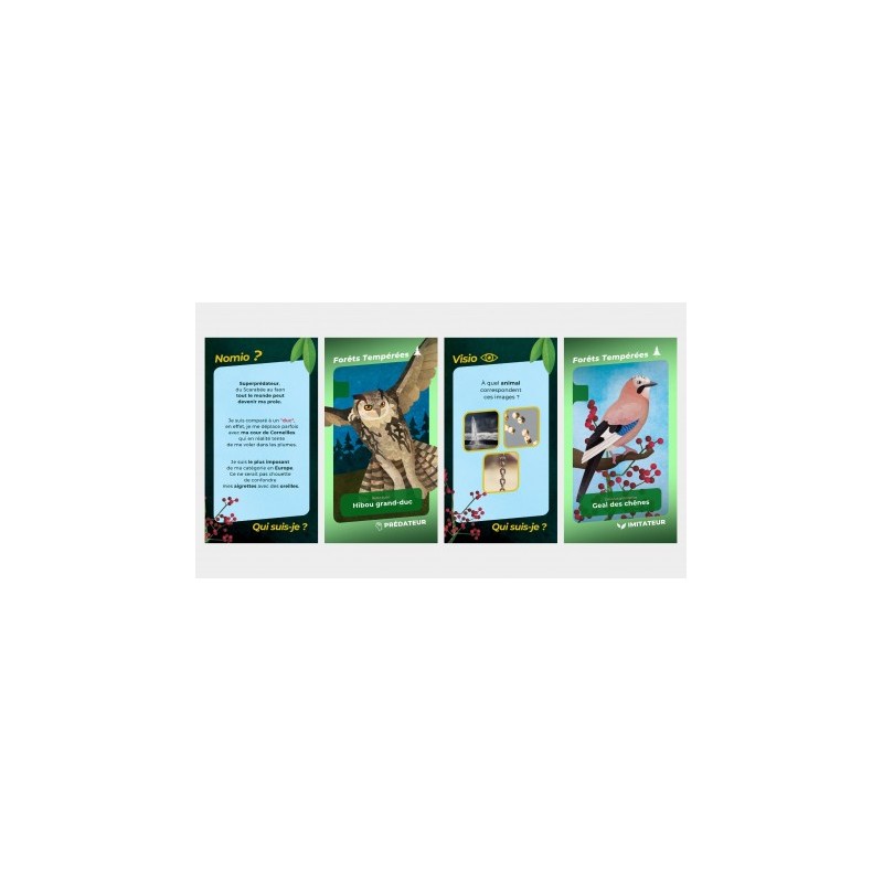 Dans TERRANIMALIA, vous devrez rassembler 4 cartes d’une même famille en réussissant des défis.