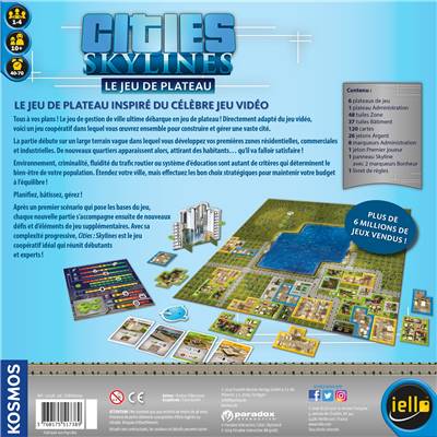 Commencez l’aventure sur un terrain vierge, et faites évoluer votre Cité en fonction des attentes des habitants ! Chaque joueur dispose de cartes lui permettant de contribuer à la construction en mettant en place de nouveaux bâtiments. Chaque ajout aura bien évidemment un effet sur l’ensemble de la ville : certains augmentent le besoin de ramassage des ordures, réduisent la criminalité, augmentent le trafic ou octroient des bonus.