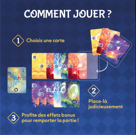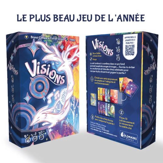 Dans VISIONS, vous devrez optimiser chaque carte pour générer un maximum de points avant que la nuit ne prenne fin. Attention, la partie s’arrête dès que la pioche est épuisée… ou lorsqu’un joueur se réveille trop tôt !